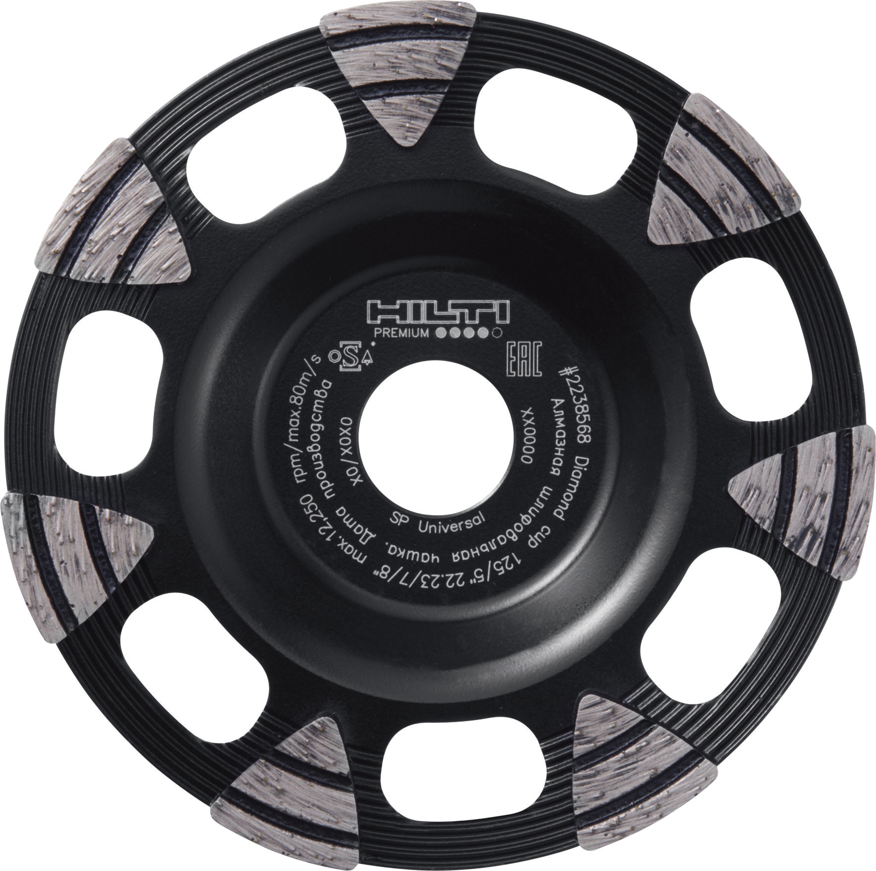 Diamond cup wheels for grinding on concrete – including universal cup wheels and grinders to remove epoxy and coatings.