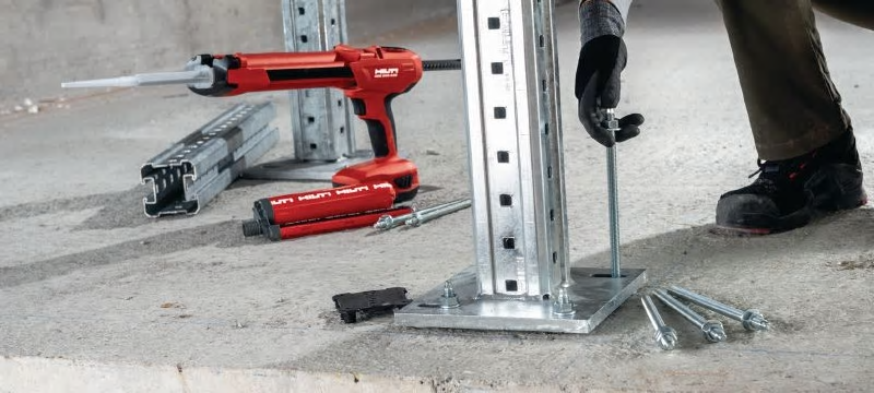 - Крепления в бетоне и кирпичной кладке в сочетании с соответствующими клеевыми анкерными системами Hilti HIT